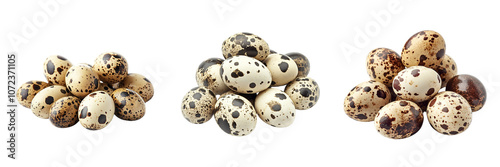 Obraz premium Set of fresh quail eggs isolated on a transparent background