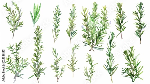 Fototapeta premium Set of fresh rosemary on white background