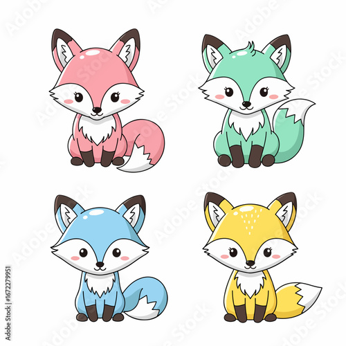 © Nellys, Fototapeta premium set of funny cartoon fox