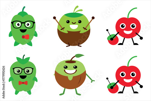 © MdHabibur, Obraz premium set of funny cartoon fruits