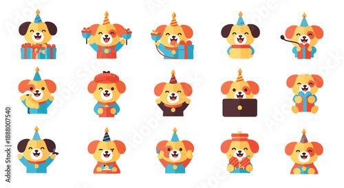 © MASJAB, Obraz premium Set of Funny Dogs for Birthday Celebration