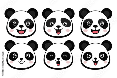 Obraz premium set of funny panda vector illustration, silhouette, logo icon and line art...