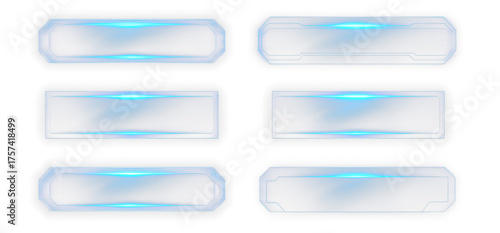 Obraz premium Set of Futuristic Glowing Blue Rectangular Panels for Digital Designs Isolate...