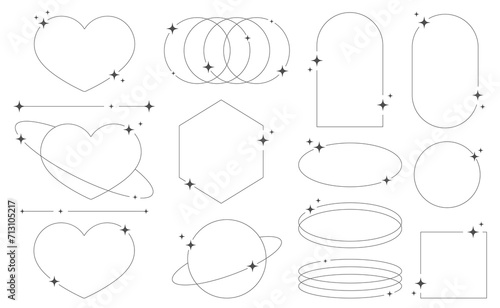 © Nalyvka Nataliia, Fototapeta premium Set of geometric aesthetic abstract line frames and shapes with stars boho, brutalism, Y2K style. Geometric elements with sparkles for template design social media, poster, banner, logo, stickers