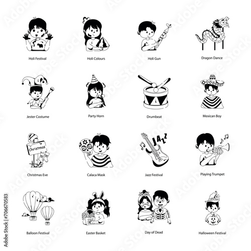 © Prosymbols, Naklejka premium Set of Global Festivals Glyph Icons