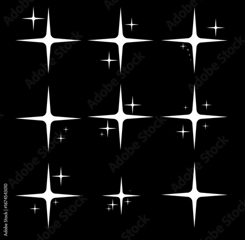 © Serhii Bielik, Naklejka premium Set of glowing sparkling stars fireworks twinkle flash icons vector
