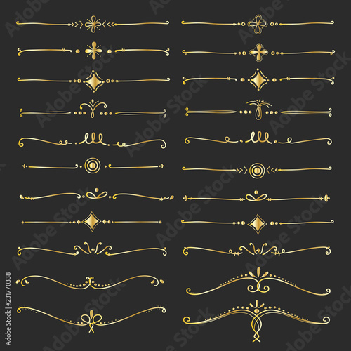 © OneyWhyStudio, Naklejka premium Set Of Golden Decorative Calligraphic Elements For Decoration. Handmade Vector Illustration.