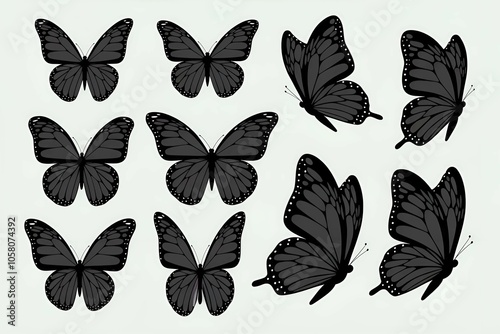 Fototapeta premium Set of Graceful Butterfly Silhouettes in Black and White