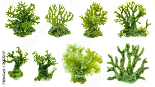 © Royal, Fototapeta premium Set of green aquatic moss coral reefs, cut out