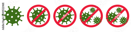 Obraz premium Set of Green Coronavirus 2019-nCoV, Virus, COVID-2019 icon. Outbreak,...