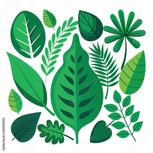 © RAZAUL, Fototapeta premium set of green leaf isolated on white background