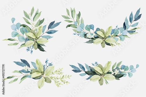 © Krit, Fototapeta premium Set of Green Leaves Bouquets in Watercolor Style