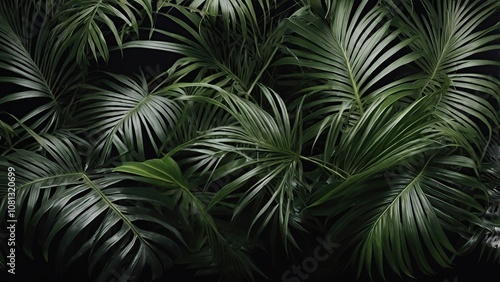 © Viktor_D, Obraz premium Set of green palm leaves on both sides, cut out