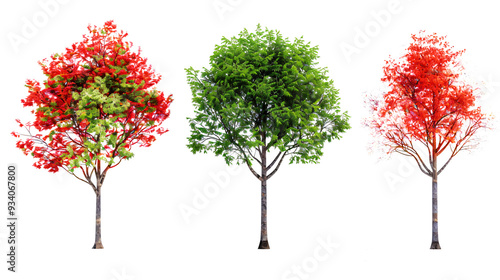 Fototapeta premium Set of green, red, and white colors trees isolated on transparent background....