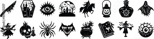 © Morium, Obraz premium set of Halloween element silhouette collection. Black and white vector editable file.