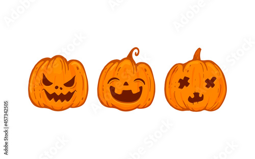 Fototapeta premium set of halloween pumpkins isolated on white, jack o lantern halloween
