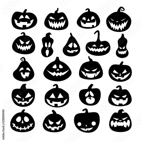 © Sergey Kolesov, Fototapeta premium Set of Halloween scary pumpkins. Flat style spooky creepy pumpkins