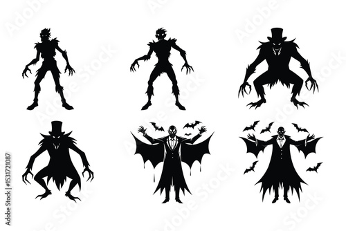 Fototapeta premium Set of halloween vector silhouettes featuring spooky vampires and creatures...