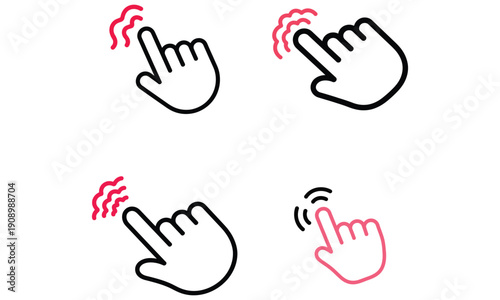 Obraz premium Set Of Hand Click Gesture Icons With Touch Motion Lines On White Background