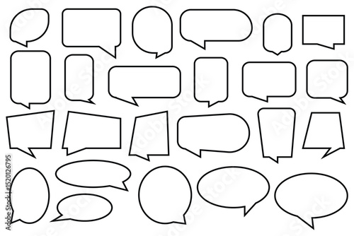 © HIKESTUDIO 9, Obraz premium Set of hand drawn chat balloon, comic speech bubble icon, dialogue frame, message idea, quote, or cloud information sticker, Includes various unique speech bubble shapes and expressive speech bubbles