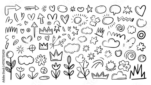 © md, Naklejka premium Set of hand drawn doodle arrow icons, symbols, and elements vector illustration pattern
