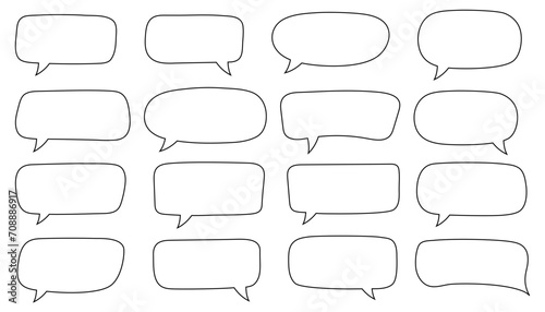 Obraz premium Set of hand drawn line speech bubbles. Speech balloon, chat bubble art vector line speech bubbles for apps and websites.