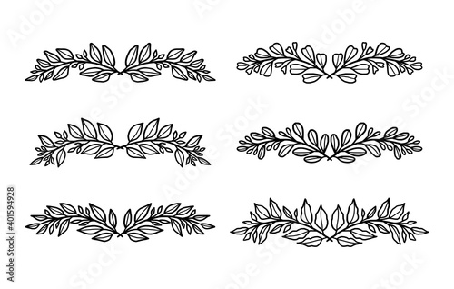 © Artflorara, Naklejka premium Set of hand drawn natural & botanical leaf wreath and laurel elements