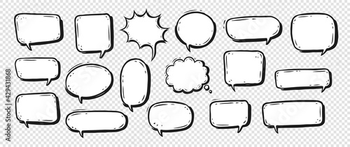 Obraz premium Set of hand drawn talk speech bubbles and think for dialog words or message. Design elements