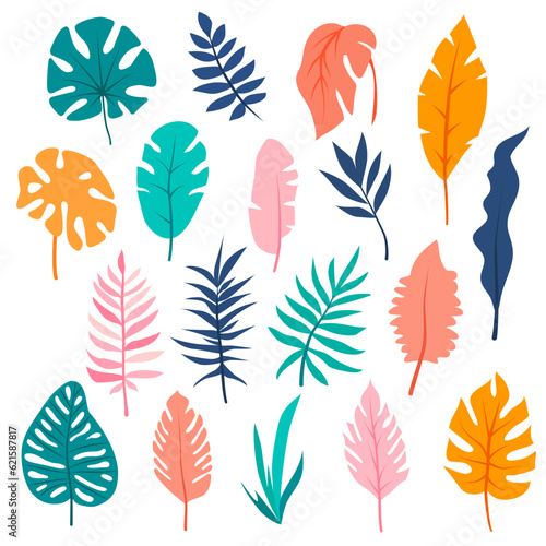 © barmaleeva, Fototapeta premium Set of hand drawn tropical leaves. Floral foliage, palm tree branch, jungle leaves