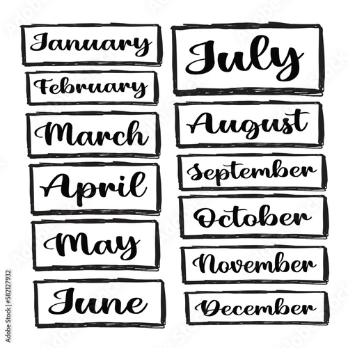 © Dzafa, Fototapeta premium Set of hand drawn typography of months on a white background. Month hand made typography / calligraphy EPS Vector