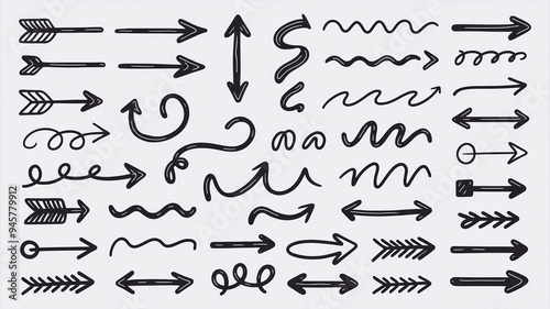 Fototapeta premium Set of hand-drawn vector arrow doodles. Set of hand drawn arrow vector...