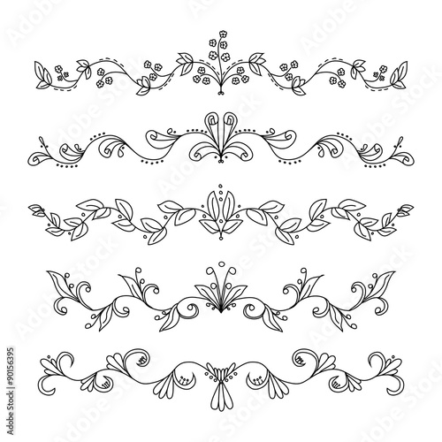 © minichka, Fototapeta premium Set of hand drawn vector swirly divider