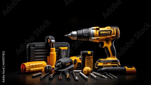 Fototapeta premium Set of hand tools on a black background. Generative AI
