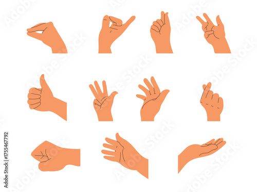 © katakari, Fototapeta premium Set of hands with different gestures, hand sign
