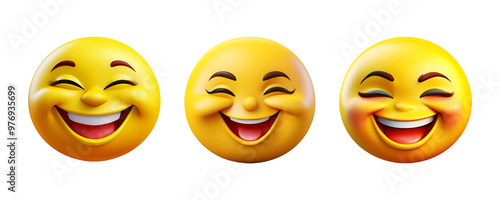 © Virdauso, Fototapeta premium set of happy laughing emoticon in 3d style isolated on transparent background