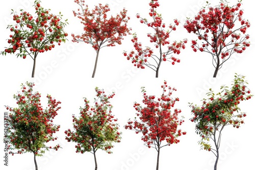 © Radar, Obraz premium Set of Hawthorn Trees with Bright Red Berries Isolated on a White Background