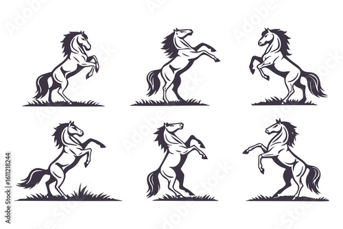 © Roman, Fototapeta premium Set of Horse Silhouettes Vector Illustration, Collection of Running and Standing Horses, Black Animal Icons Isolated on White Background