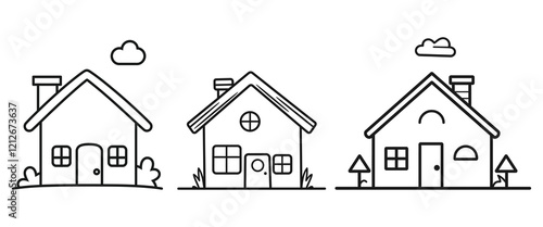 © tarek, Fototapeta premium set of house coloring page book vector illustration for kids simple design