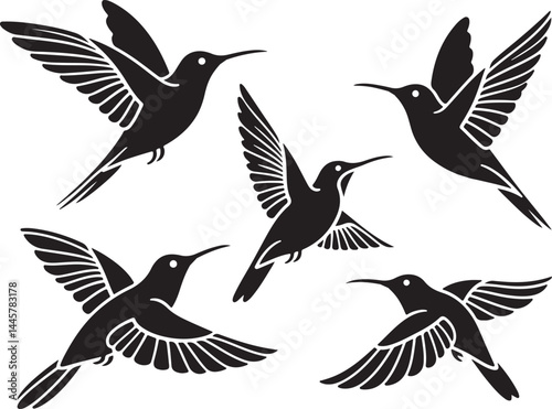 © Ramiz, Obraz premium Set of humming bird silhouette vector illustration