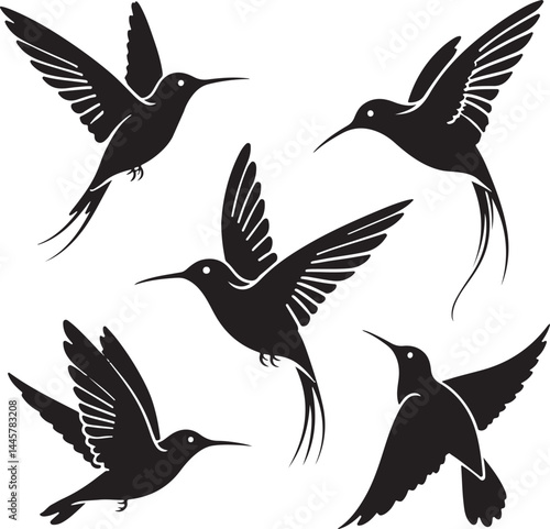 © Ramiz, Obraz premium Set of humming bird silhouette vector illustration