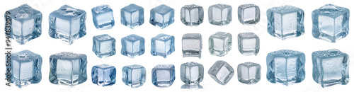 Obraz premium Set of ice cubes in different sizes and orientations isolated on transparent background