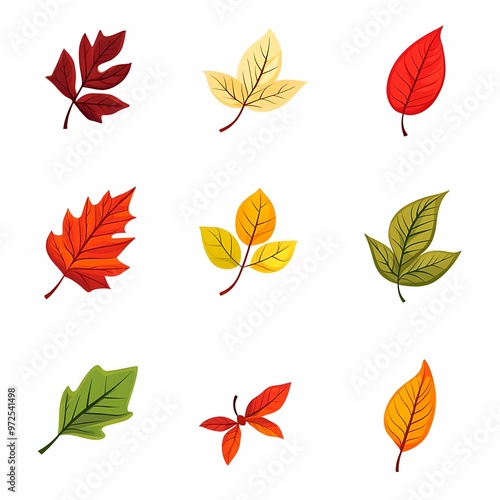 © Katerina, Fototapeta premium Set of icon autumn leaves on a white background. Vector illustration.