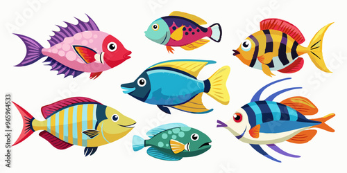 Fototapeta premium set of icons, exotic fish, done in animation style, white background