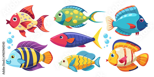 Fototapeta premium set of icons, exotic fish, made in animation style in a rich light style, white background