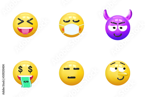 © ImagineDesign, Fototapeta premium Set of icons face emotion realistic 3d render. Yellow glossy emoticons. vector illustration