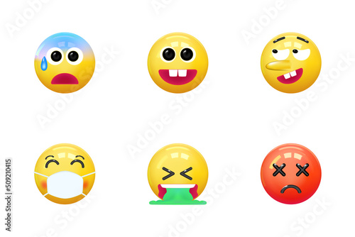 © ImagineDesign, Fototapeta premium Set of icons face emotion realistic 3d render. Yellow glossy emoticons. vector illustration
