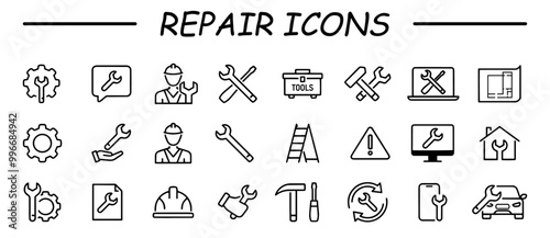 © Alexander, Naklejka premium Set of icons related to repair, maintenance, construction. Line icon collection. Vector illustration