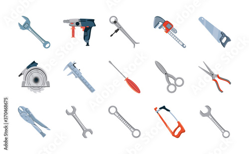 © djvstock, Naklejka premium set of icons with construction tools over white background