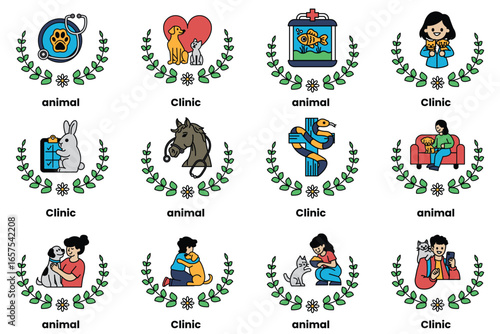 Naklejka premium set of illustrations in the concept of Animal Clinic in a line style