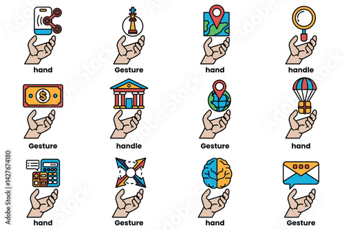 Obraz premium Set of illustrations of hands and things in line art style